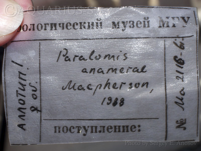 Субантарктический каменный крабоид. Этикетка. Аллотип. Колл. Зоол. Музея МГУ. рег. № MA2116-6i5 |