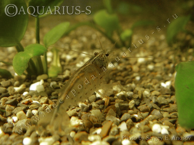 South East Asia Amano shrimp. Photo in aquarium.