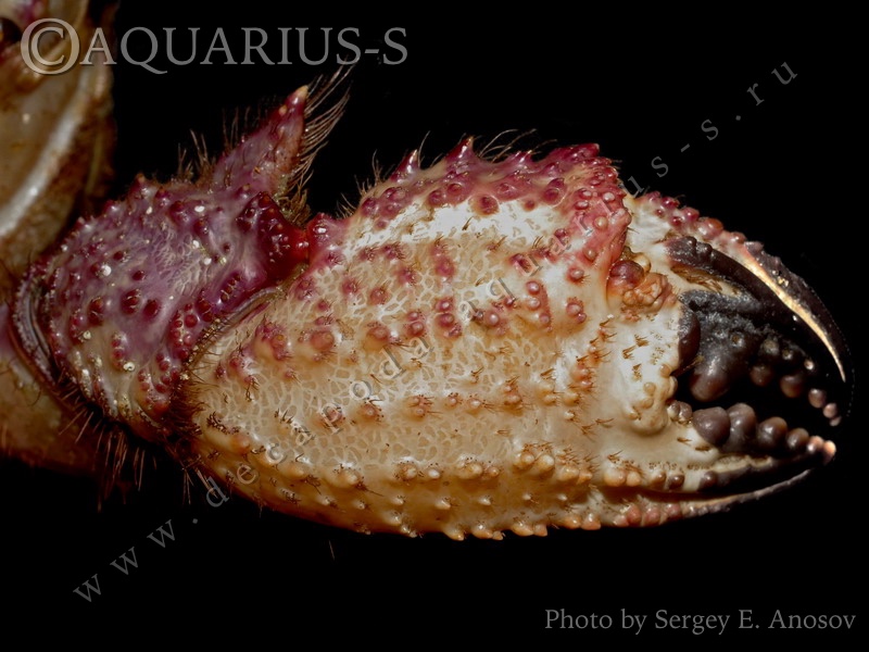 Пятиугольный волосатый краб. Правая клешня самца. |