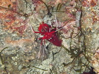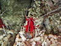 | Огненная креветка чистильщик в природе встречается на коралловых рифах в тропической зоне Тихого океана. |