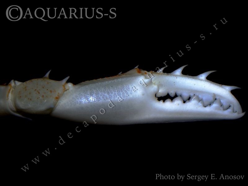 Краб плавунец. Правая клешня самки. Внешняя сторона. |