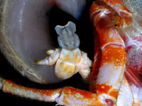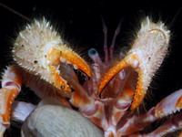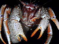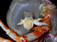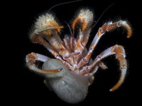 | Этот рак-отшельник был пойман как прилов на ярус, на подводных горах в южной части Тихого океана на глубине ~300м. |