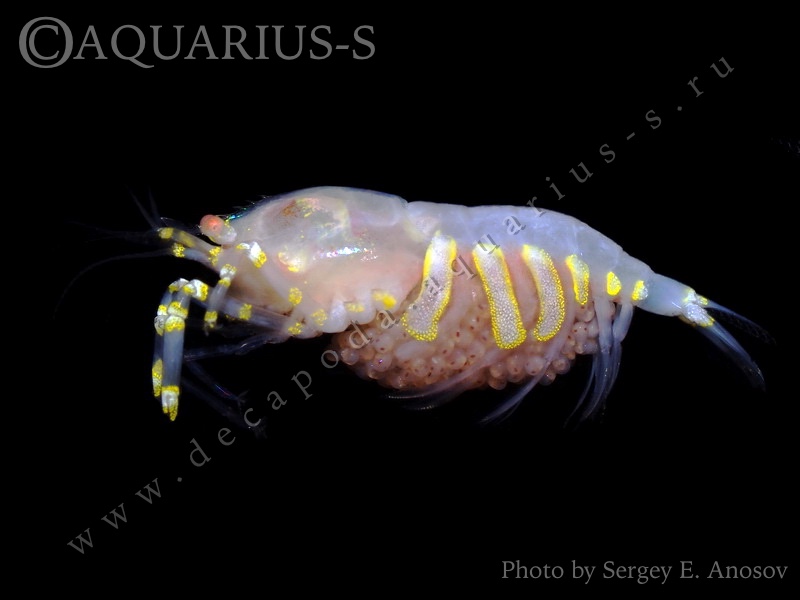 Дисковая анемоновая креветка. Яйценосная самка. Вид сбоку. |