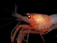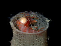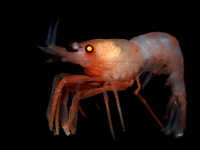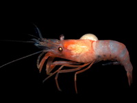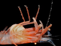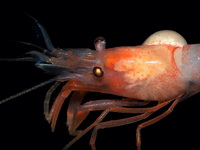 | Этот вид креветки был найден внутри губки. Глубина, с которой была поднята губка, - 840м. |